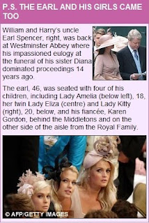 Dressed to the nines: Earl Spencer's daughters, Lady Amelia, Lady Eliza and Lady Kitty wore elaborate fascinators, with Kitty, far right, wearing a very low-cut Victoria Beckham dress with her Philip Treacy hat